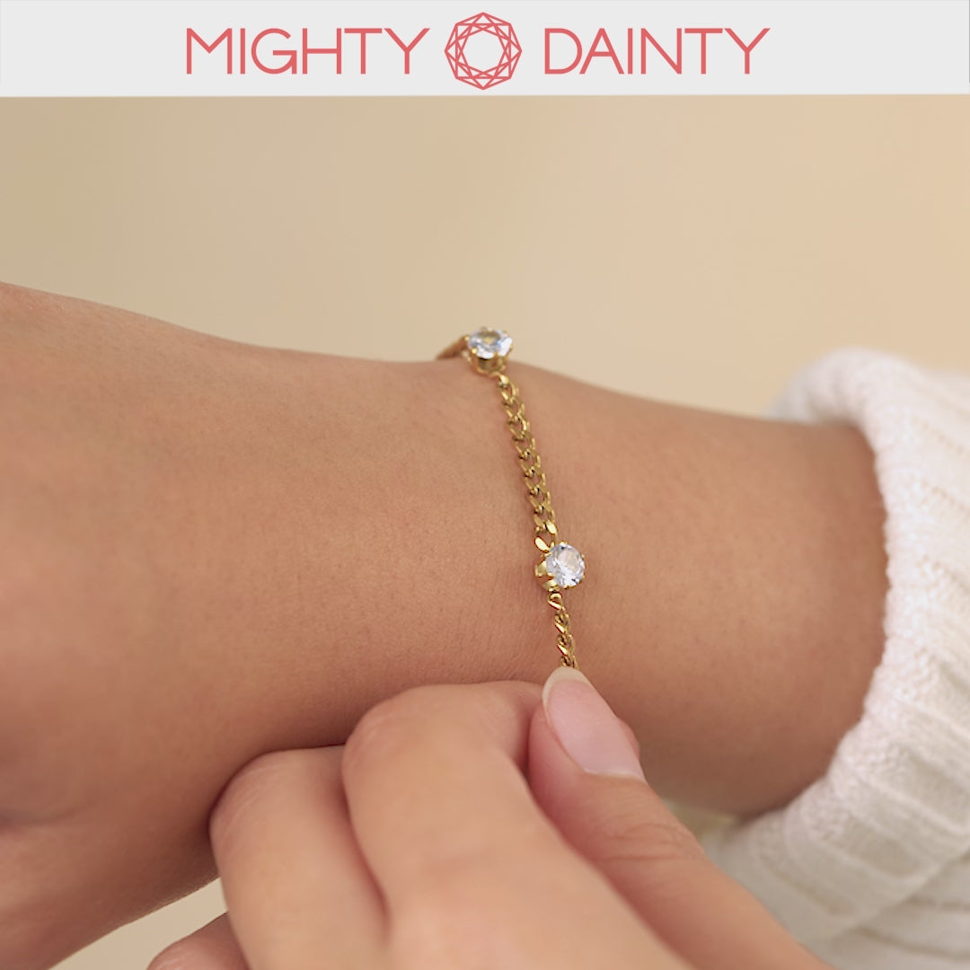 This bracelet features a delicate chain adorned with shining crystals, creating a stunning, elegant look. The crystals catch the light beautifully, making this piece a showstopper for any occasion.