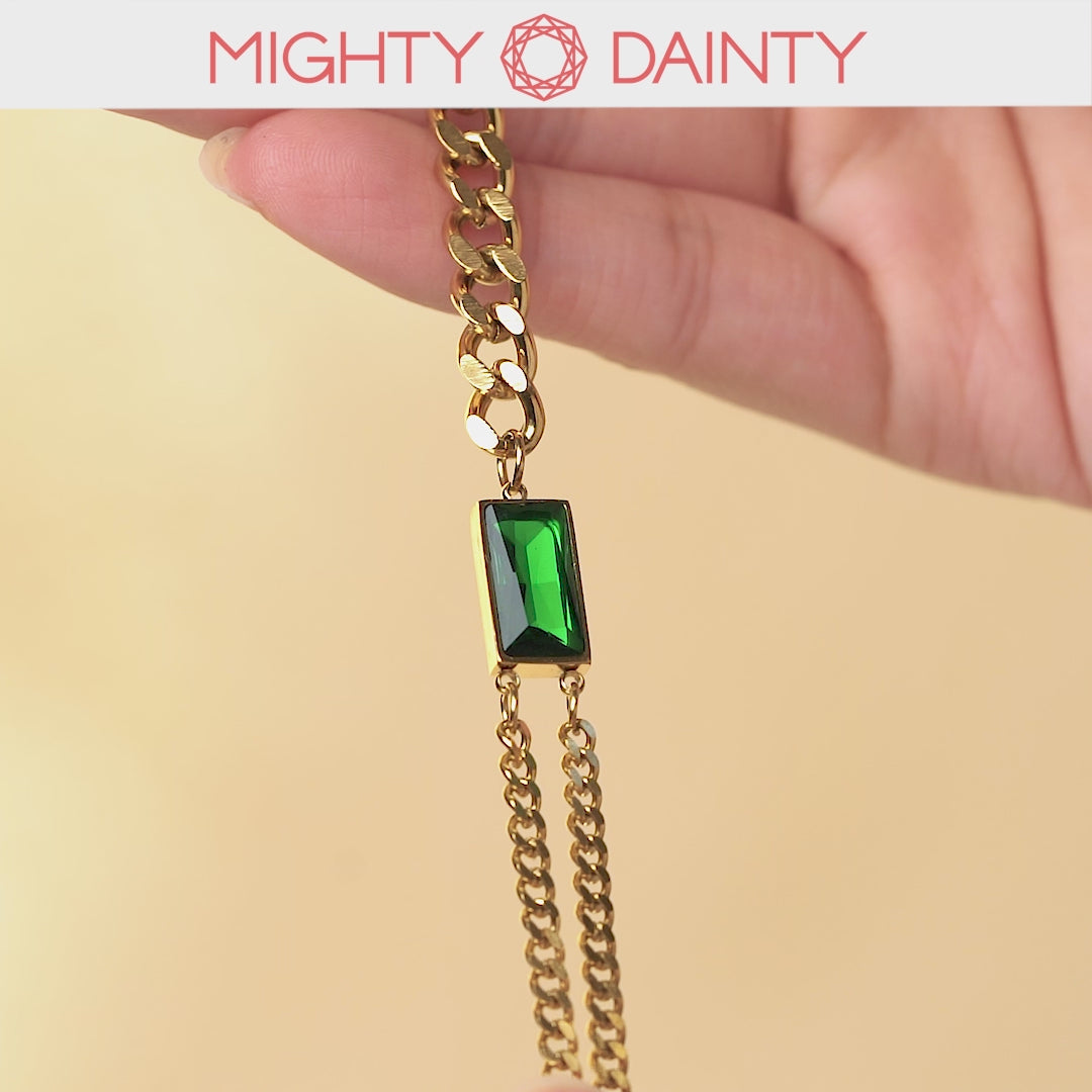 A stunning fusion of entwined rope symbolizing strength and a central emerald gem, creating a harmonious blend of earthy charm and elegance. This bracelet isn't your ordinary fashion piece; it's like having an everyday adventure buddy that adds a touch of elegance to your look.