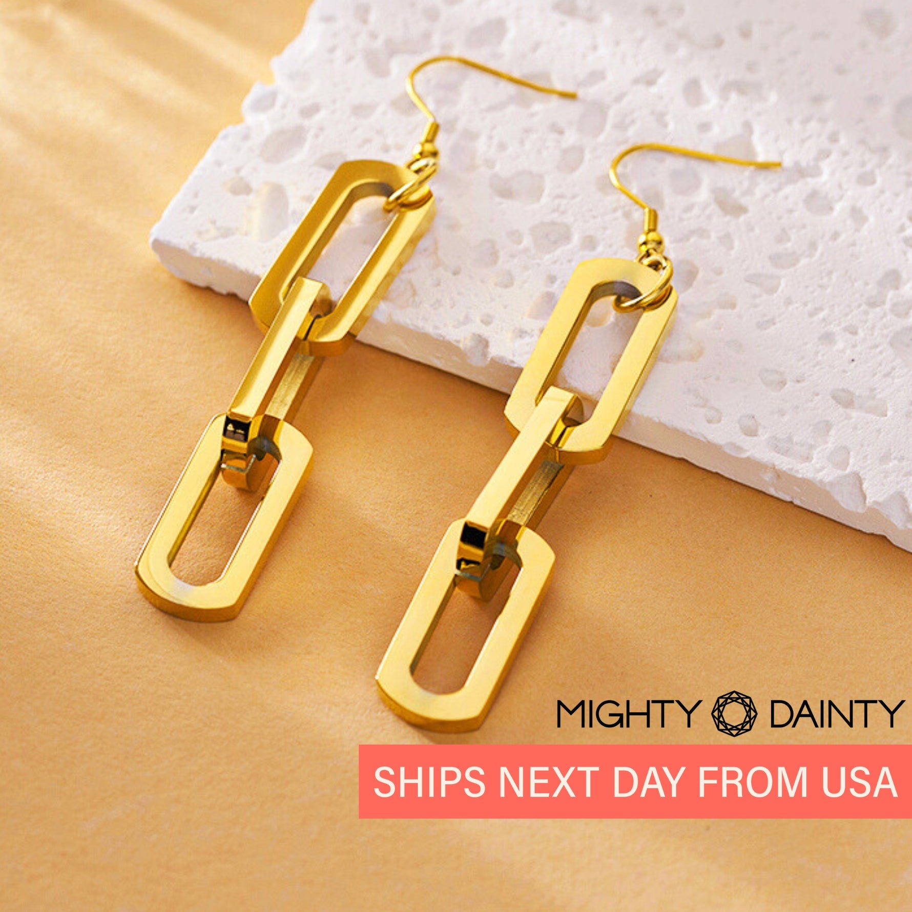 Gold Link Drop Earrings