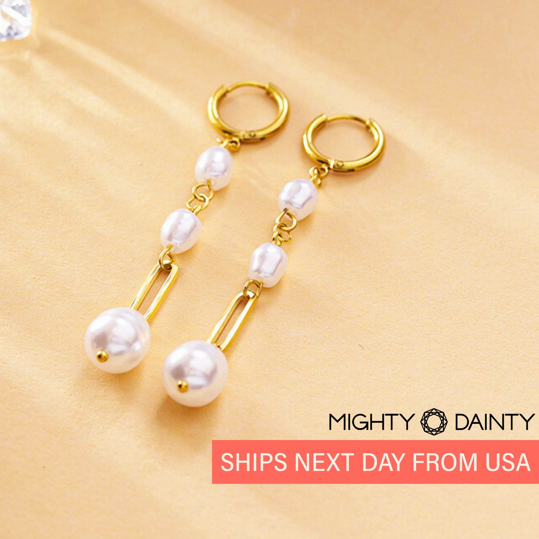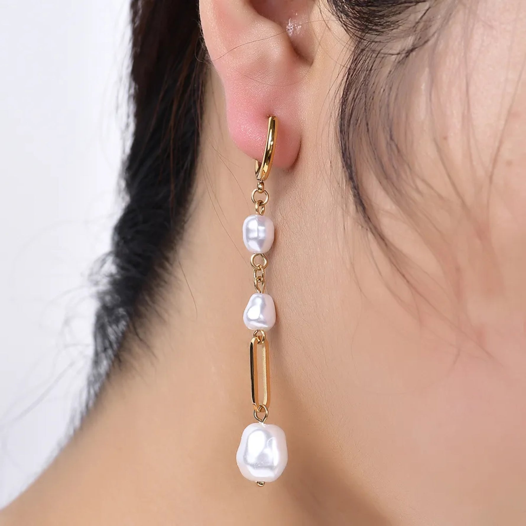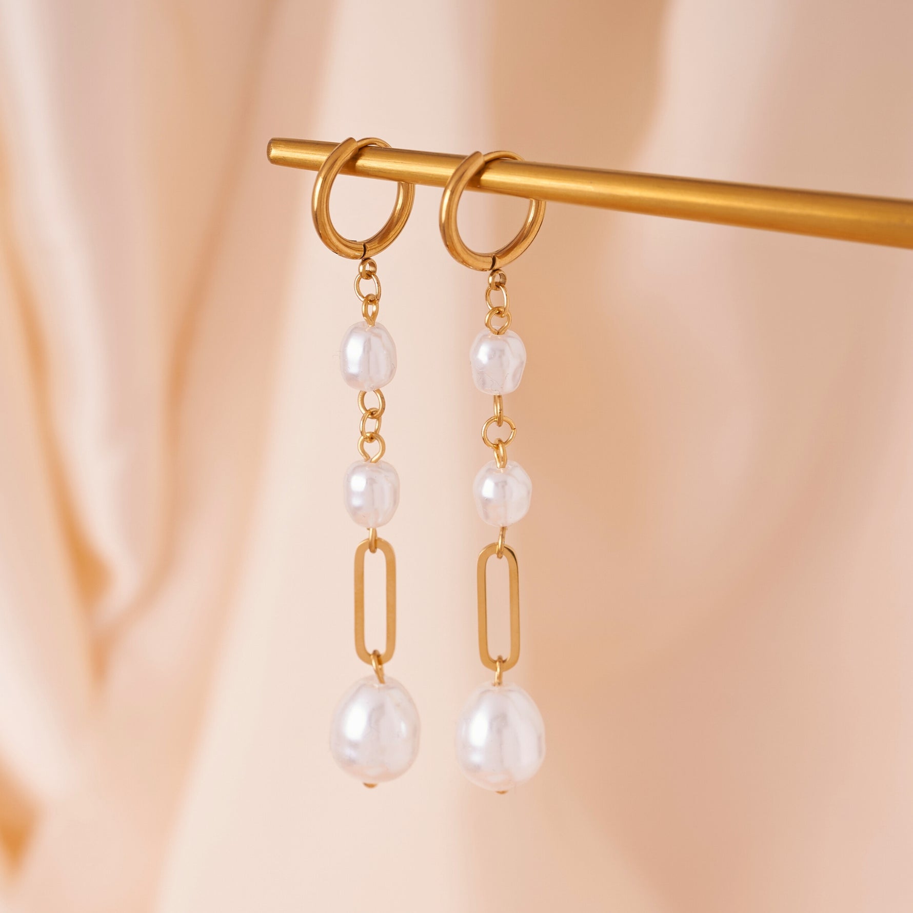 Featuring three lustrous pearls - one captivating large pearl delicately cradles beneath two smaller pearls, making these earrings your key to turning every moment into a glamorous affair.