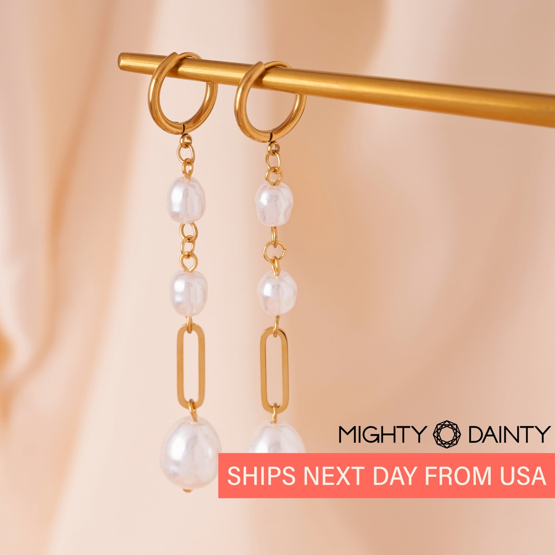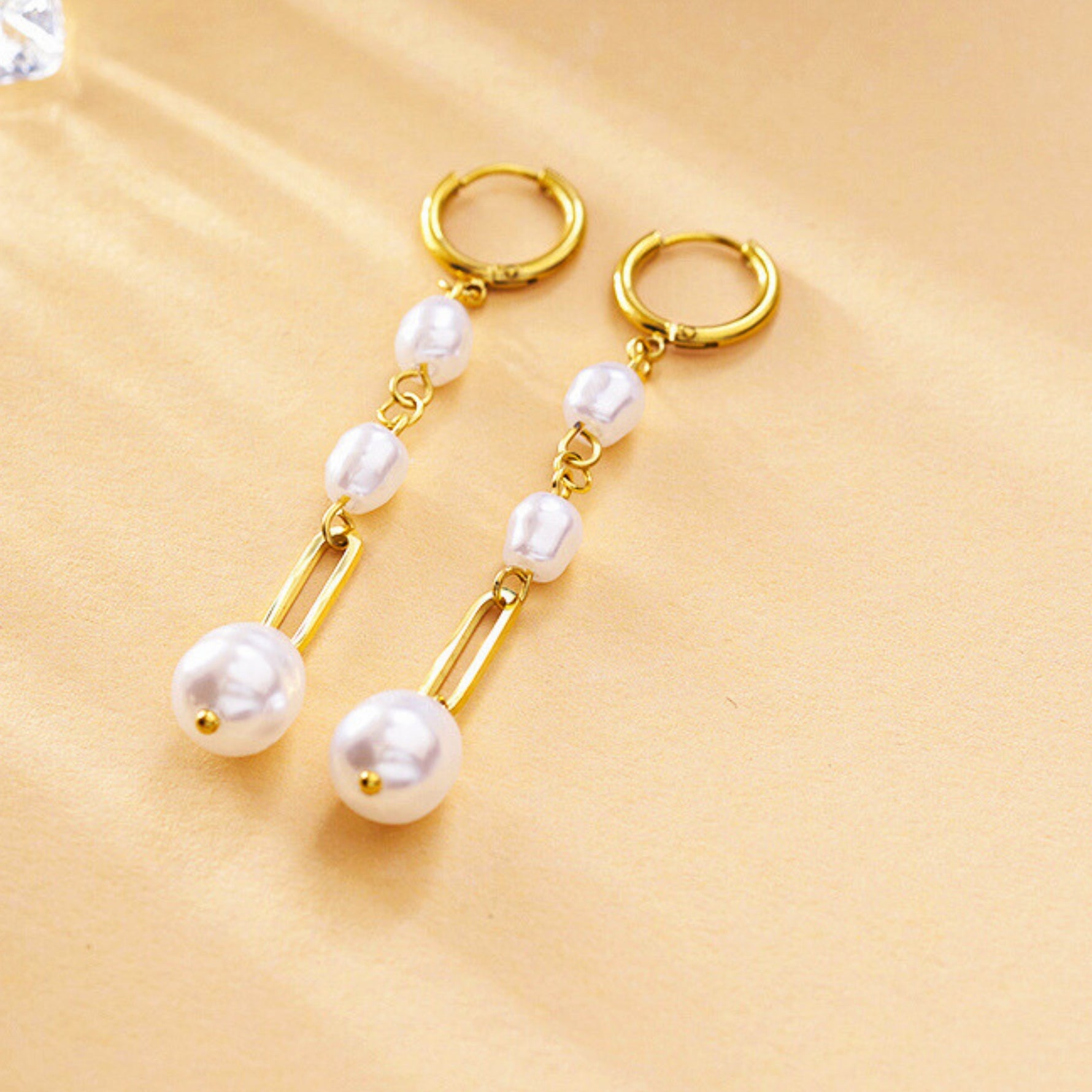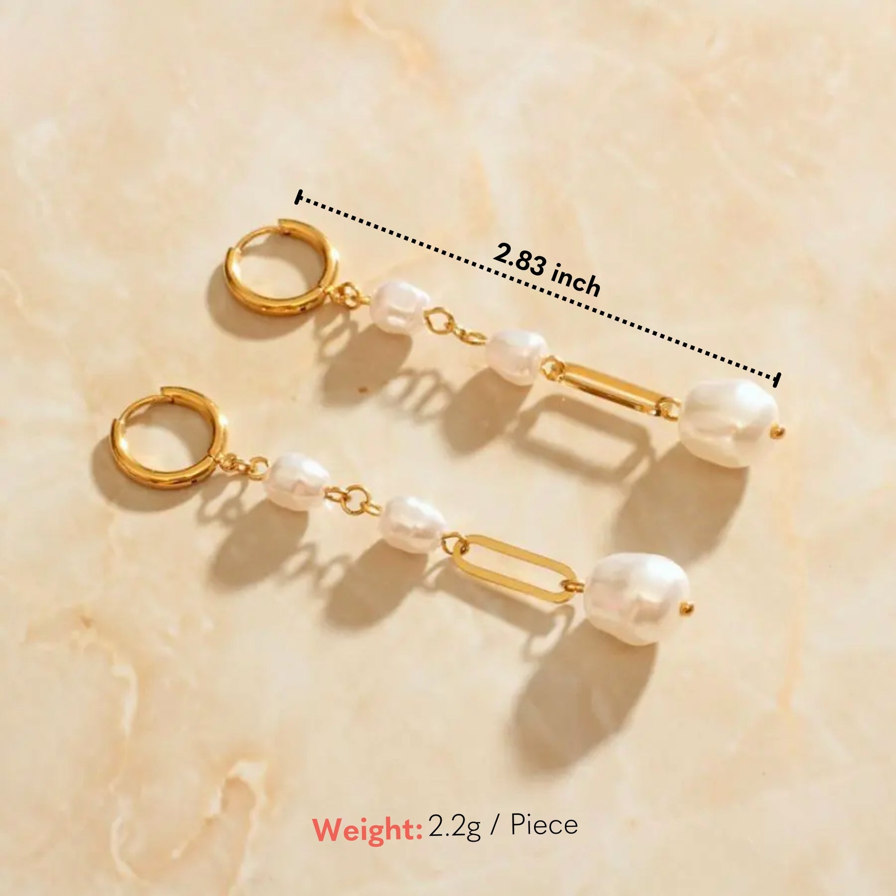 Featuring three lustrous pearls - one captivating large pearl delicately cradles beneath two smaller pearls, making these earrings your key to turning every moment into a glamorous affair.