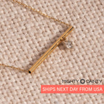 Sparkling alone or looking perfect in a layered look, the signature 14k gold bar and diamond drop necklace will reflect your contemporary and minimalist style perfectly. An ideally cut round diamond shines, suspended in a gold bezel on one end.