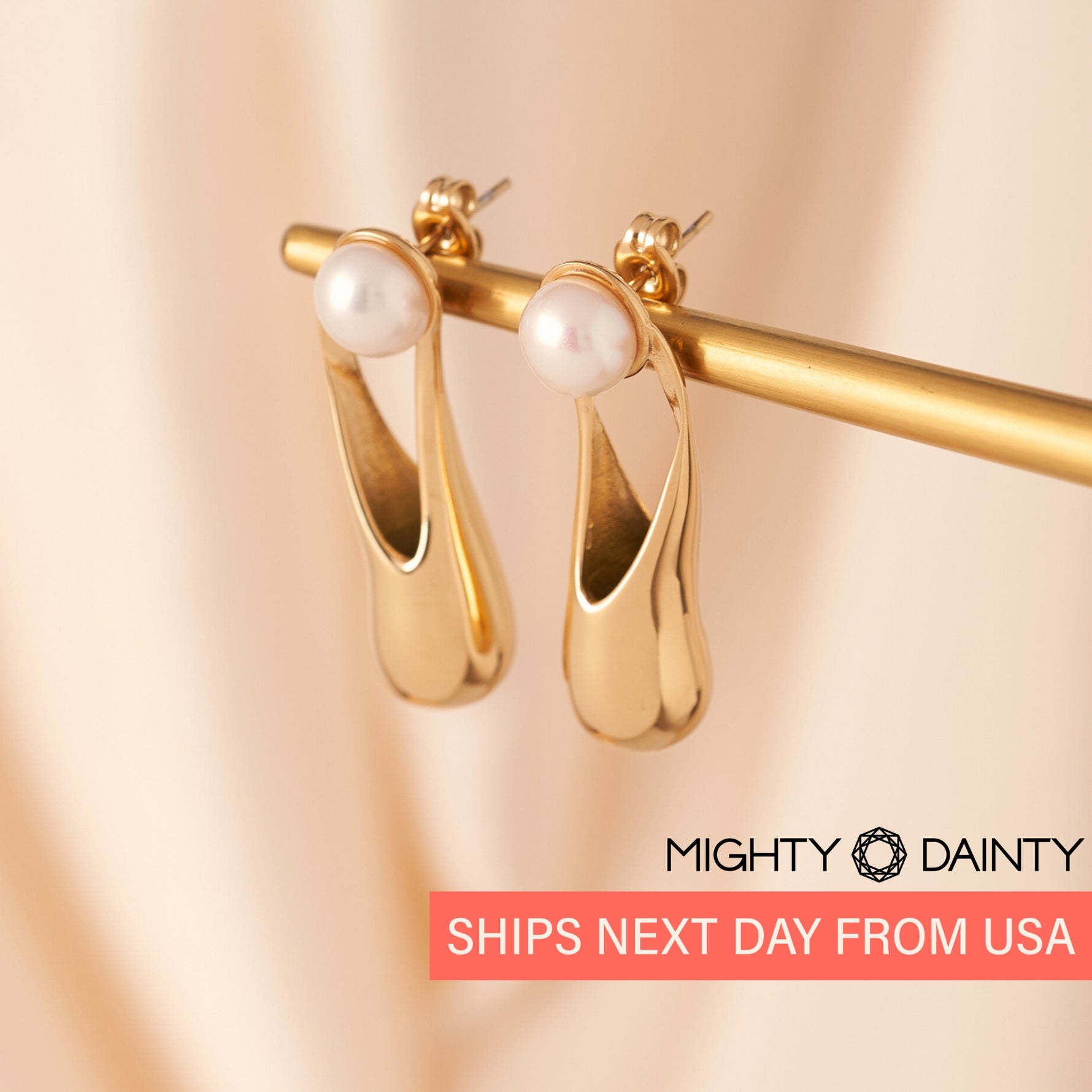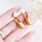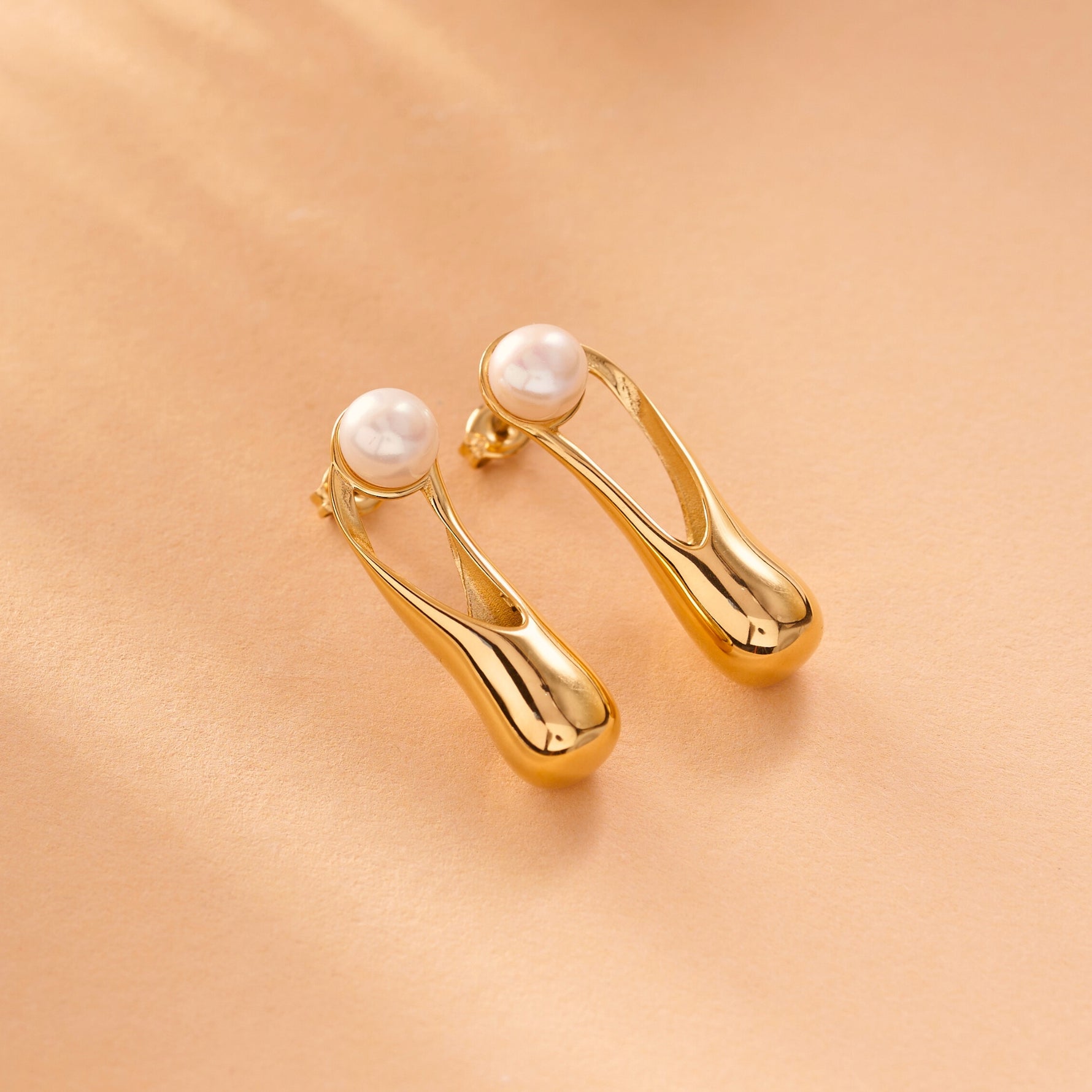 With minimalistic perfection, these pearl drop earrings blend bold design with timeless elegance.