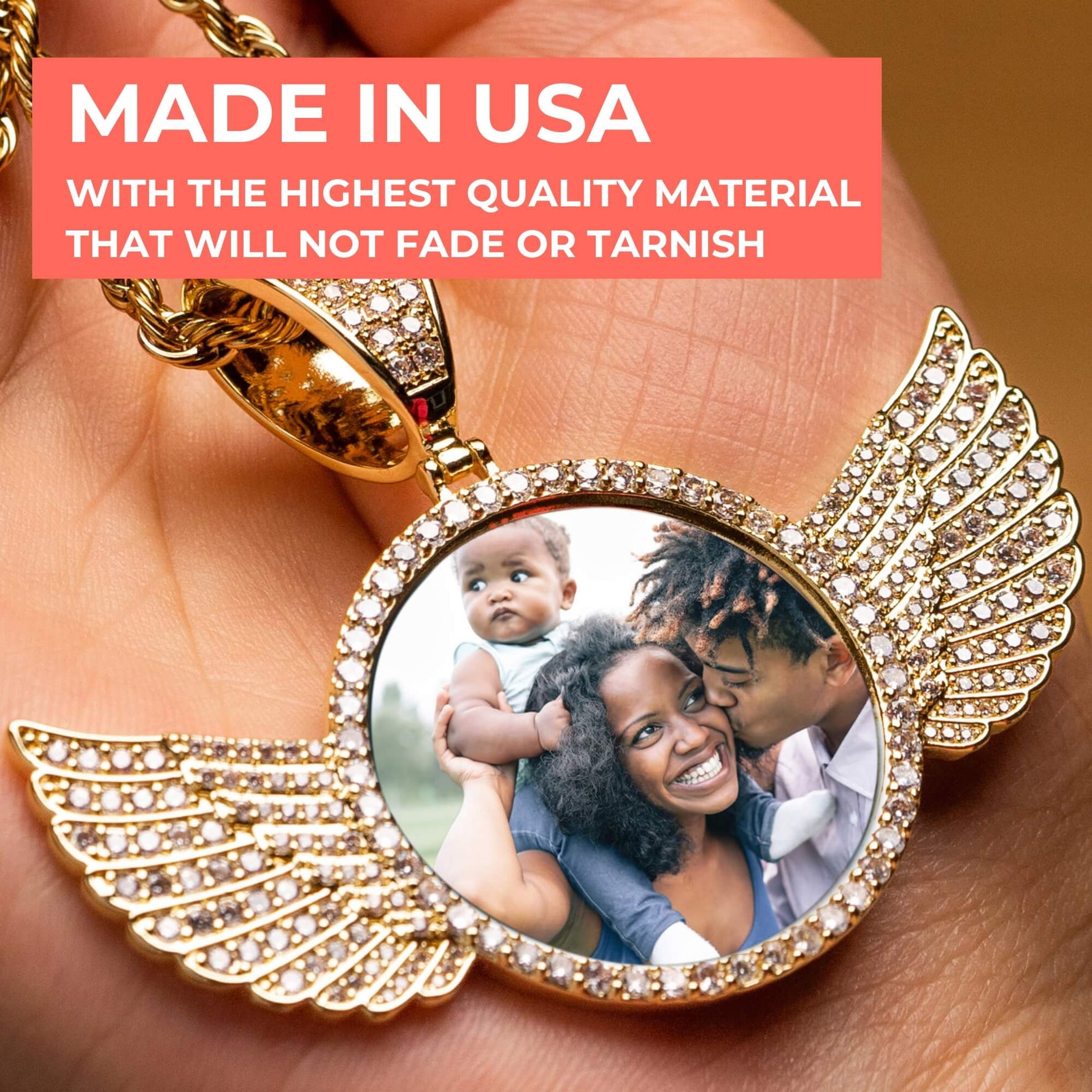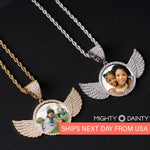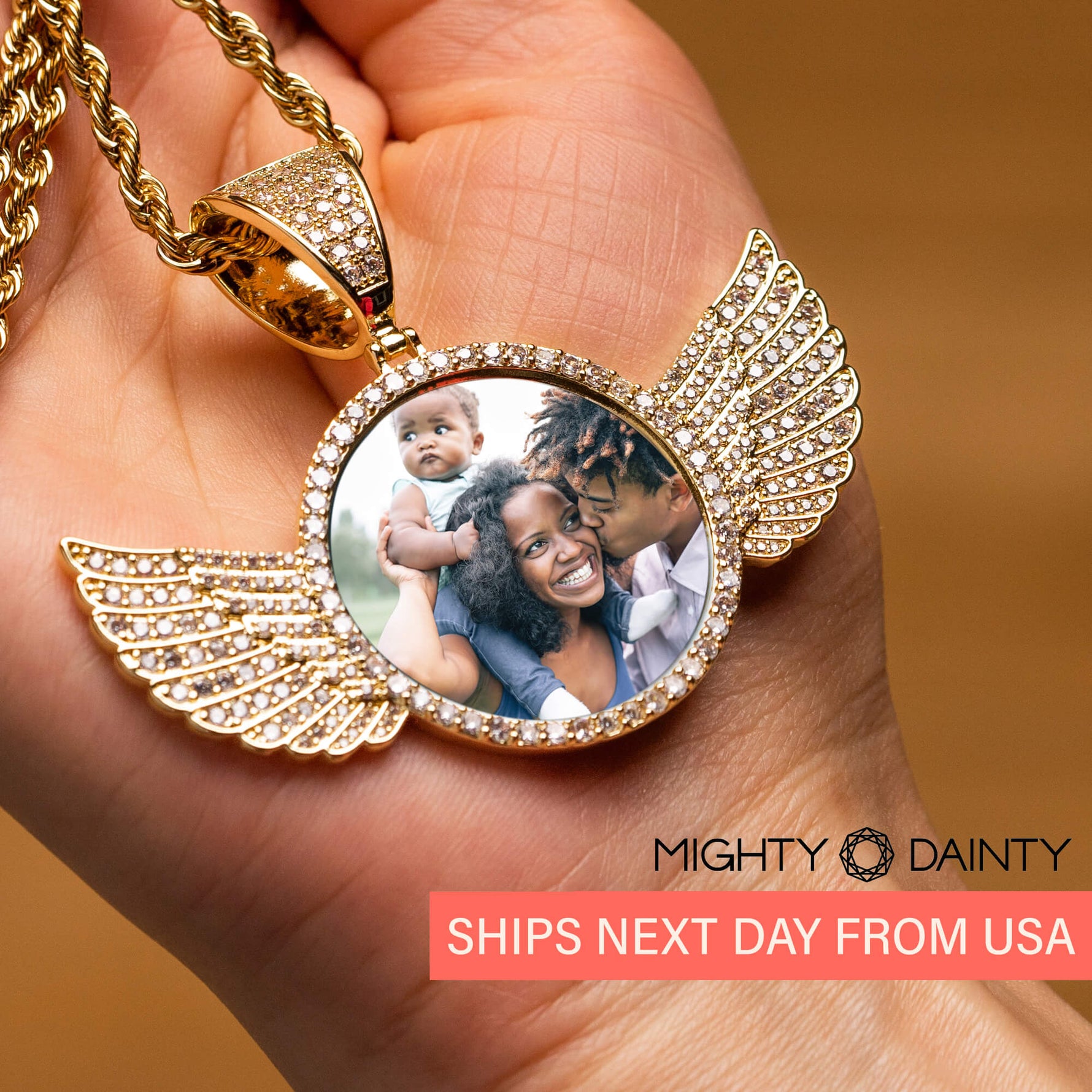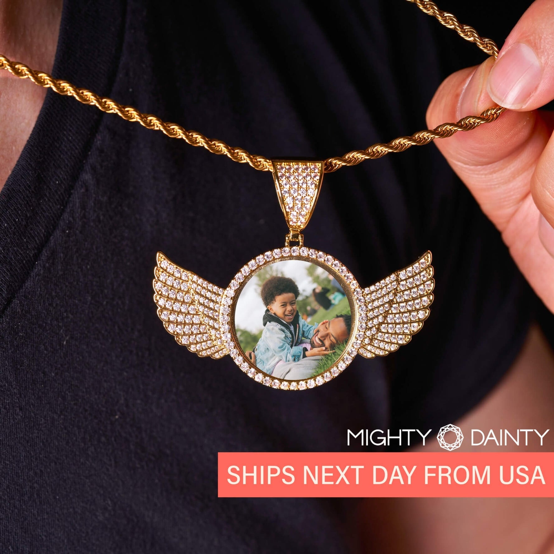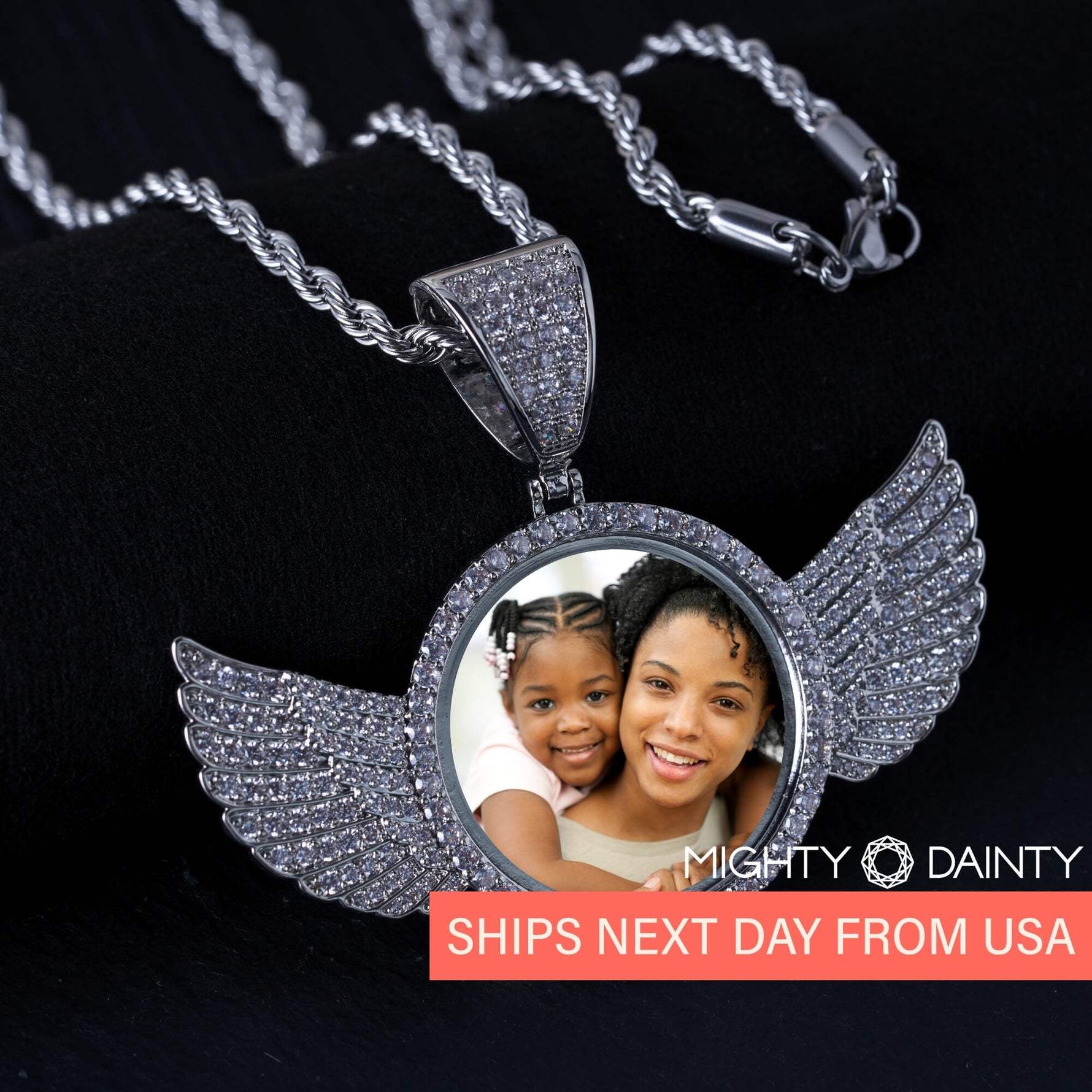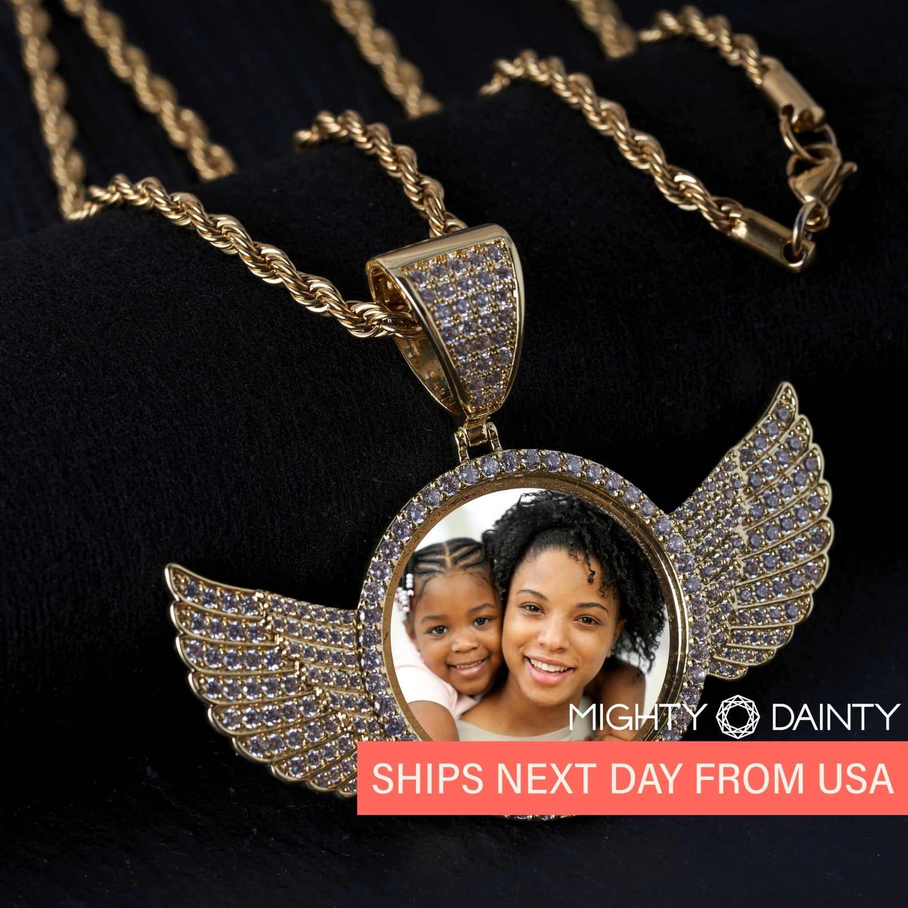 Our wings pendant necklace is a unique piece that looks great with any outfit. It features a pendant of your own customized photo, the wings and the rope chain that makes it cooler.