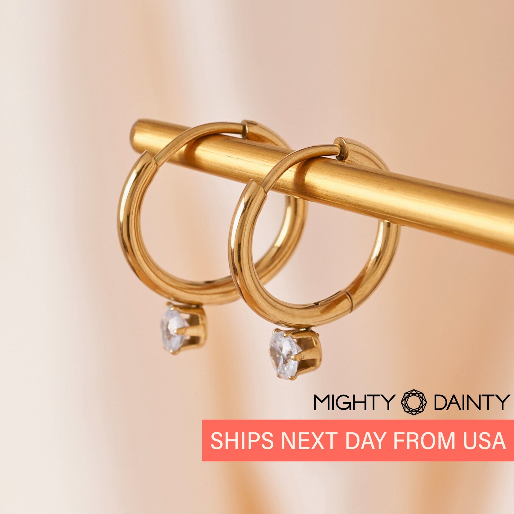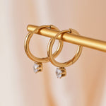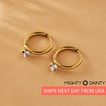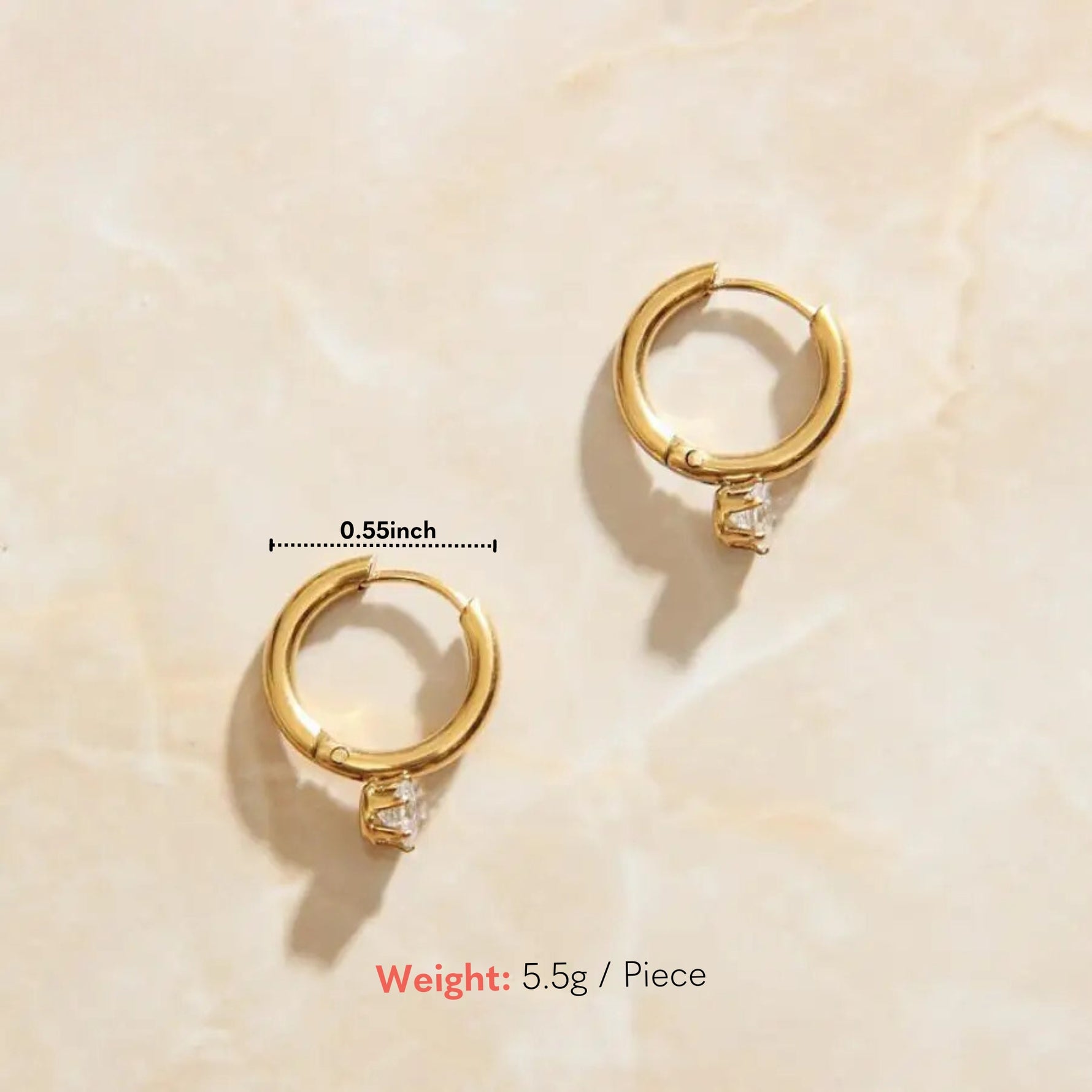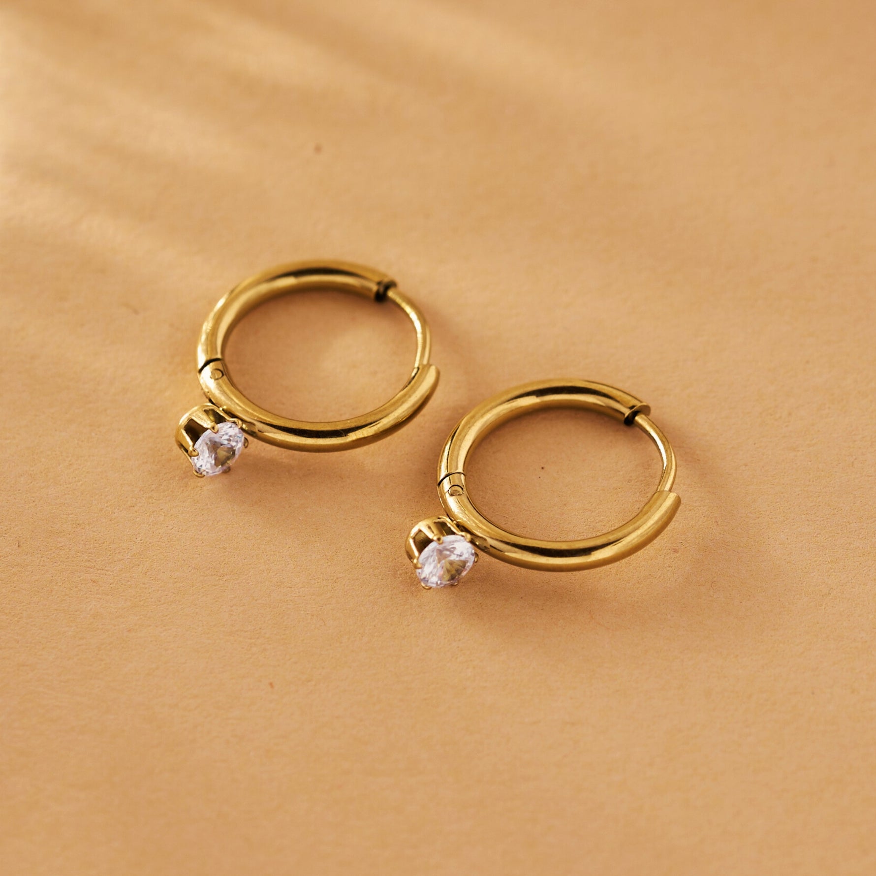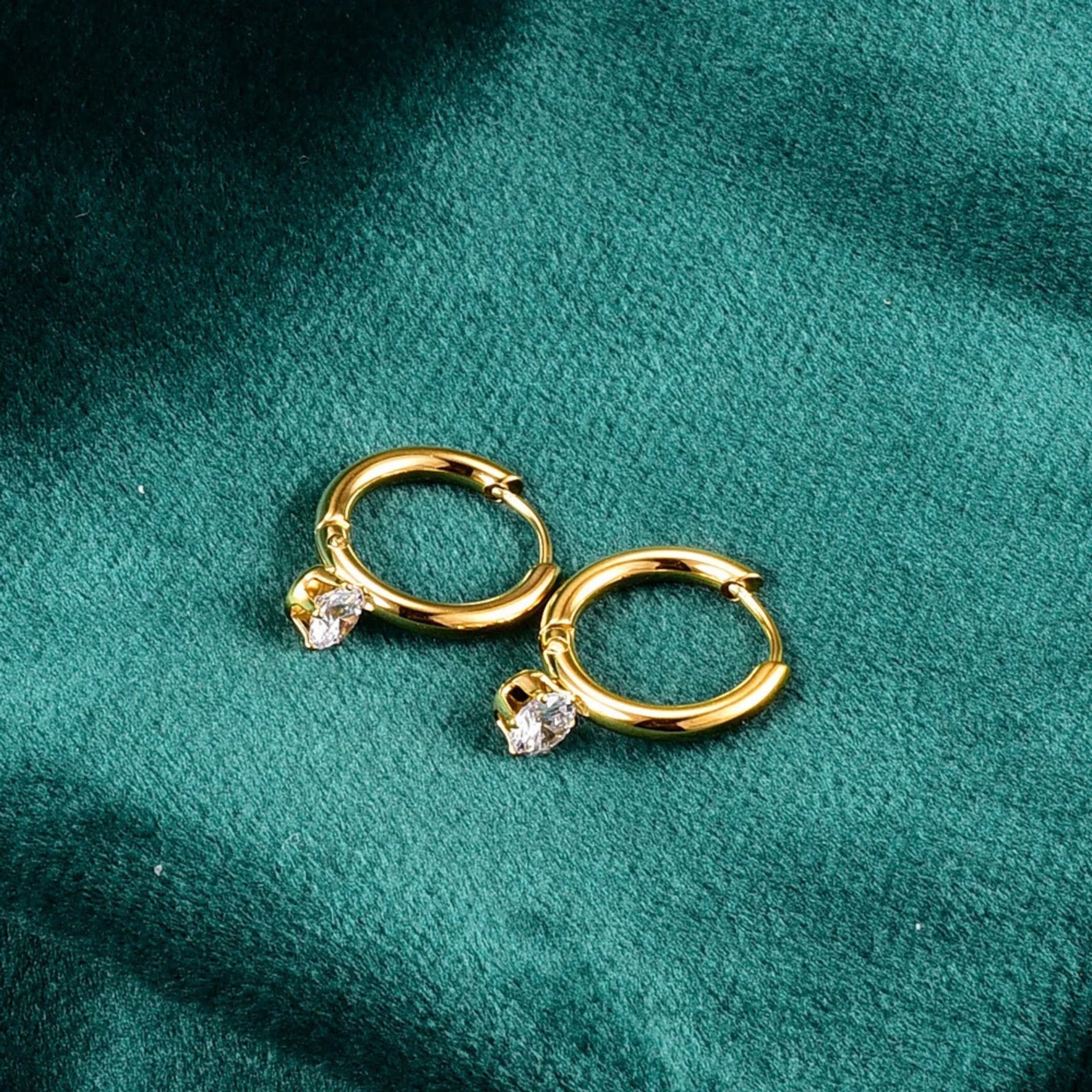 These stunning hoops feature a crystal that adds glamour to your everyday style. With their huggy design, they snugly hug your earlobe for a comfortable and secure fit. Your ultimate pick for refined beauty.