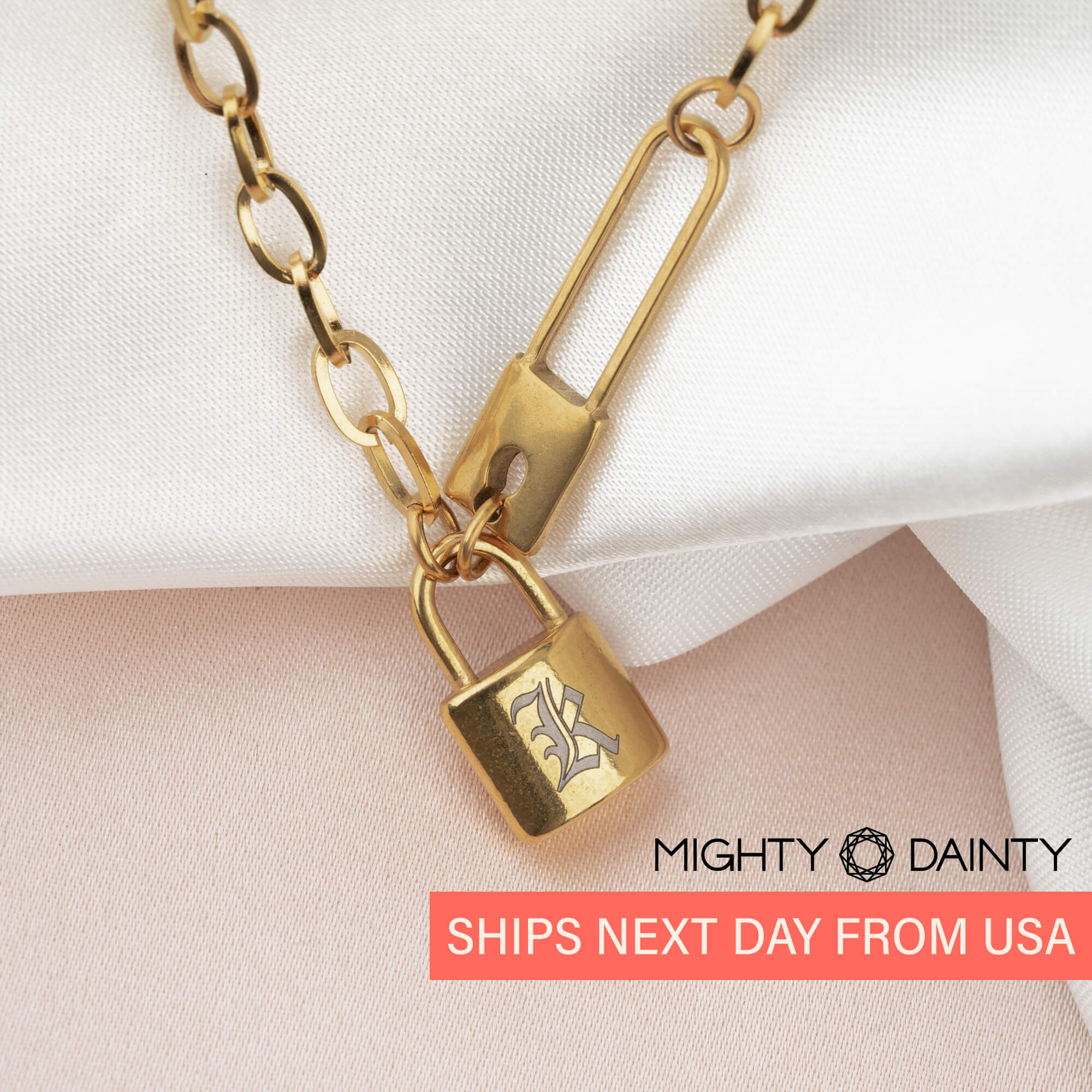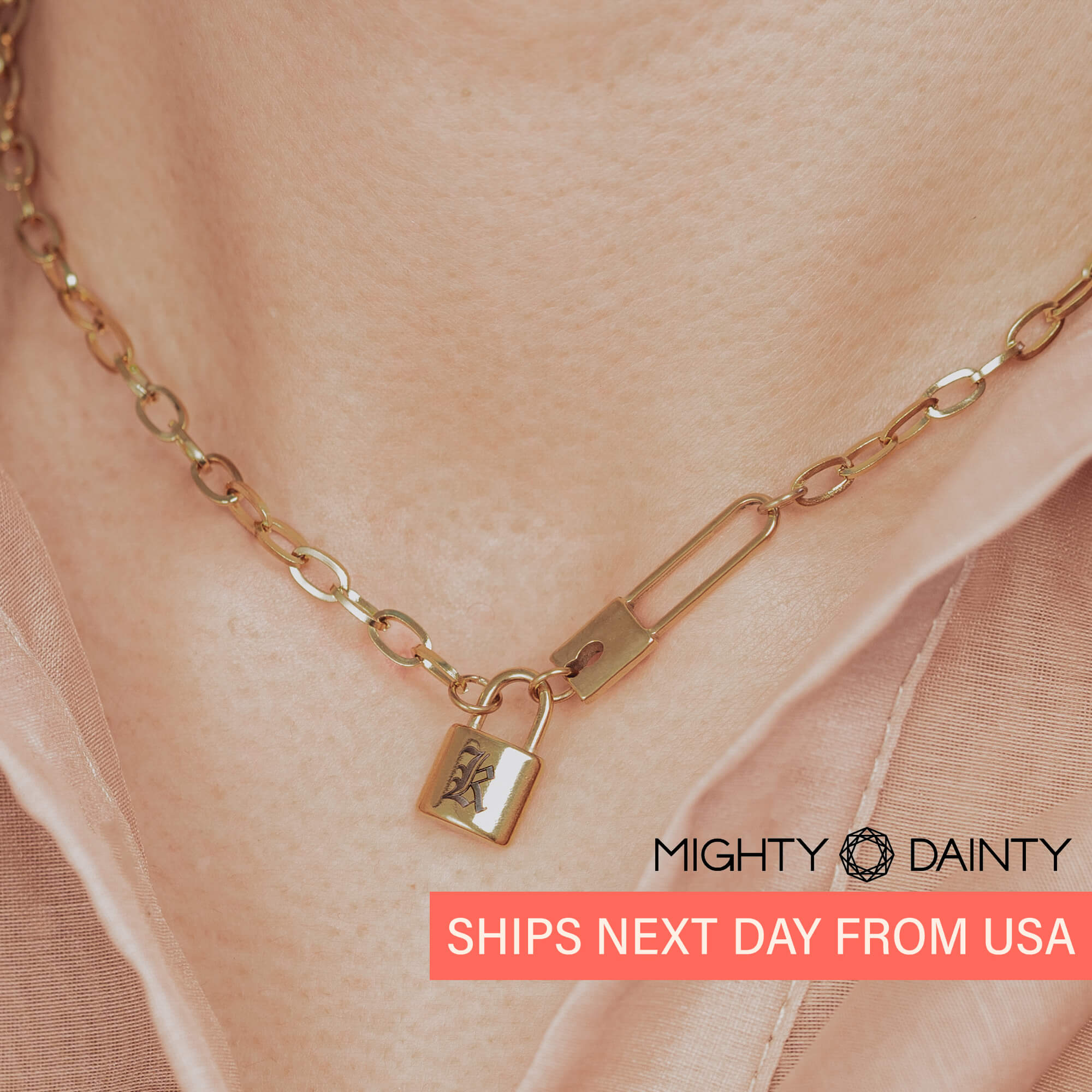 The Padlock Initial Paper Clip Necklace is all about structure and presence. With its bold lettered padlock and link design, this padlock paperclip necklace brings a distinctive edge to your collection.