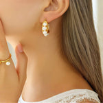 The Pearl Crest U-Hoops bring a fresh, sculptural twist to classic pearl earrings. Designed in a modern U-shaped silhouette, each hoop is framed with perfectly rounded faux pearls that create a soft, elegant arc along the gold-plated body. The pearls sit securely around the lower curve, giving the earrings a dimensional, high-end feel.