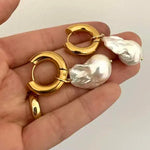 Hanging Pearl Hoop Earrings