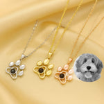 The Paw Print Custom Photo Projection Necklace is made for pet lovers who want to keep their furry friend close in a unique way. Available in gold, rose gold, or silver, the paw design holds a smooth central stone that reveals your chosen black-and-white image when you look inside or shine a light through it.