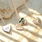 This charming, portrait locket photo necklace is great for everyday wear. The photo shows the front and back of the heart necklace. Customize with your own pictures to make a gift she’ll cherish forever. This one-of-a-kind locket makes a heartfelt gift for loved ones, or a stylish addition to your own jewelry collection.