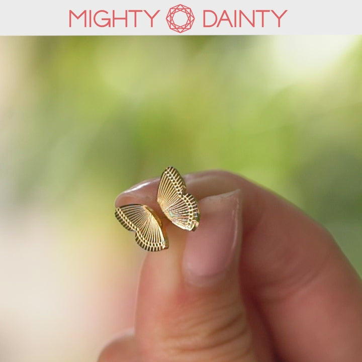 Delicate but not too precious, the Gold Butterfly Wing Stud Earrings bring in just the right amount of shape and shine. These butterfly wing earrings are light, easy to style, and work well whether you're dressing up or keeping it casual. You can wear them solo or stack them with other studs – they’ll hold their own either way.