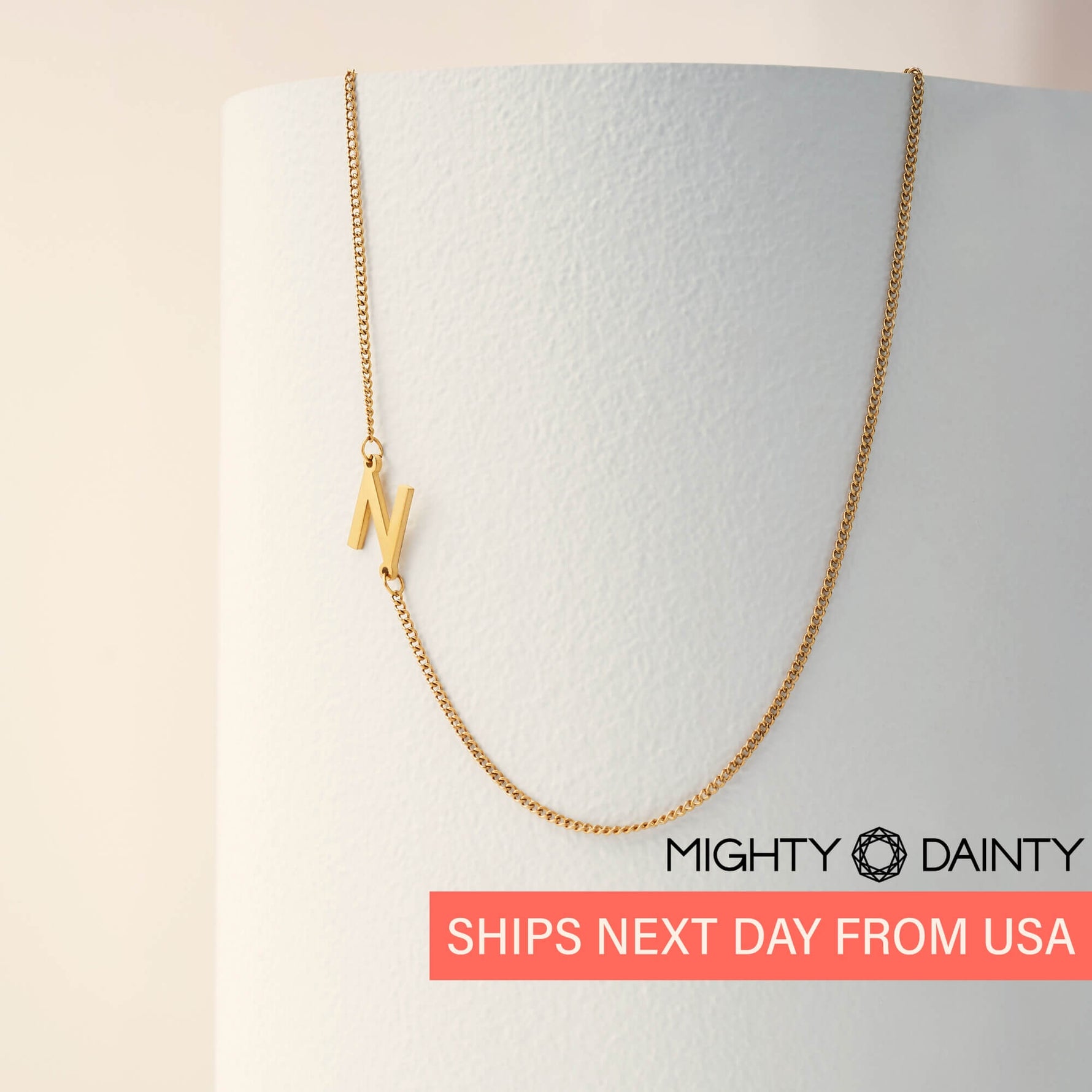 Standout with this unique initial necklace that surprises you with a dainty letter at an unexpected angle. The simple design holds your favorite initial close without compromising on your style.