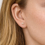Designed for daily wear, these studs are lightweight, comfortable, and easy to style. Worn alone or layered with other pieces, the Mini Pearl Trio Studs add a subtle point of light—clean, minimal, and timeless.